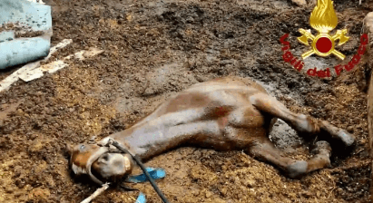 VENETO – Cavallo sprofonda in una pozza di letame: salvato dai vigili del fuoco (FOTO)