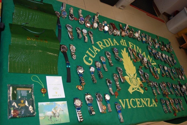 C’è anche un vicentino, residente a Torri di Quartesolo, con negozi a Vicenza e Creazzo (iniziali S.G. di 39 anni nato a Messina) fra gli indagati della guardia di finanza, dopo il blitz dei giorni scorsi che ha fatto emergere una rete commerciale occulta di orologi contraffatti. Le fiamme gialle di Vicenza ha eseguito 20 perquisizioni nei confronti di 16 soggetti, italiani e stranieri, residenti tra le province di Vicenza, Padova, Venezia, Napoli, Palermo, Genova e Lucca (nel comune di Viareggio), responsabili – a vario titolo – della commissione di reati di contraffazione aggravata, introduzione aggravata nel territorio dello Stato di prodotti con segni falsi, commercializzazione aggravata di orologi contraffatti (recanti prevalentemente il marchio ROLEX) e ricettazione. In tale contesto sono stati sequestrati circa 200 orologi, che si sono aggiunti ad altri 100 orologi sequestrati nei mesi precedenti, e circa 60 mila euro in contanti. Dalla ricostruzione della rete distributiva del traffico illecito di migliaia di orologi, è emerso un volume d’affari annuo stimato in oltre € 6 milioni, certamente facilitato dalla possibilità di spedire in ogni parte d’Italia la merce a mezzo di corrieri espressi e dal pronto regolamento delle partite tramite l’utilizzo di carte di debito ricaricabili.
