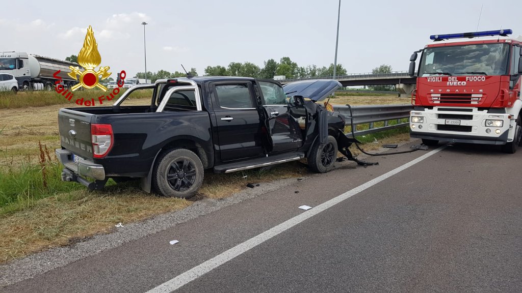 VENETO – Con il Pick-up fuori strada si infilza in un guard-rail: grave automobilista (FOTO)