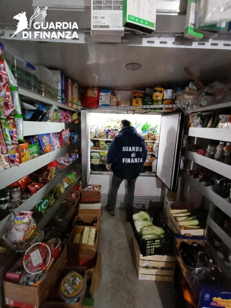 Il magazzino si è rivelato inadeguato alla conservazione di prodotti alimentari, con pareti scrostate, muffe, scarsa tracciabilità, etichette assenti o non in lingua italiana, promiscuità tra alimenti e materiali non commestibili (tra cui seghe elettriche e prodotti per la pulizia). Inoltre, è stata rilevata la presenza di carne e derivati del latte scaduti e quasi una tonnellata di alimenti mal conservati (prodotti ittici, carne, yogurt, tofu, germogli di soia, frutta, verdura e legumi) fuori dalla catena del freddo, rendendoli inidonei al consumo umano.