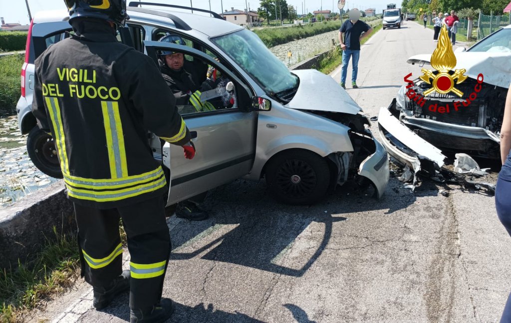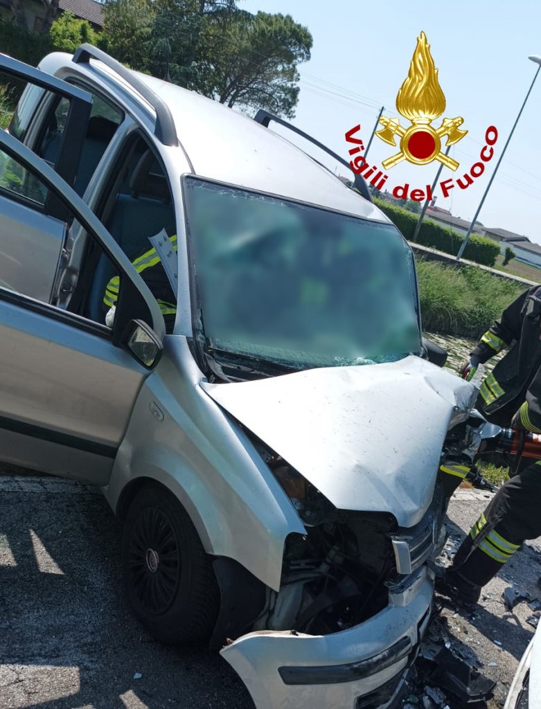 Il secondo incidente in via Grassaga a San Donà dove si sono scontrate due auto ed è rimasta ferita la conducente della Panda, rimasta incastrata ed estratta dalla squadra dei vigili del fuoco del locale distaccamento. La donna è stata presa in cura dal personale del Suem per poi essere trasferita in eliambulanza in ospedale. Assistita sul posto l’altra persona coinvolta nel sinistro. i carabinieri hanno deviato il traffico ed eseguito i rilievi dell’incidente. (sotto le foto)