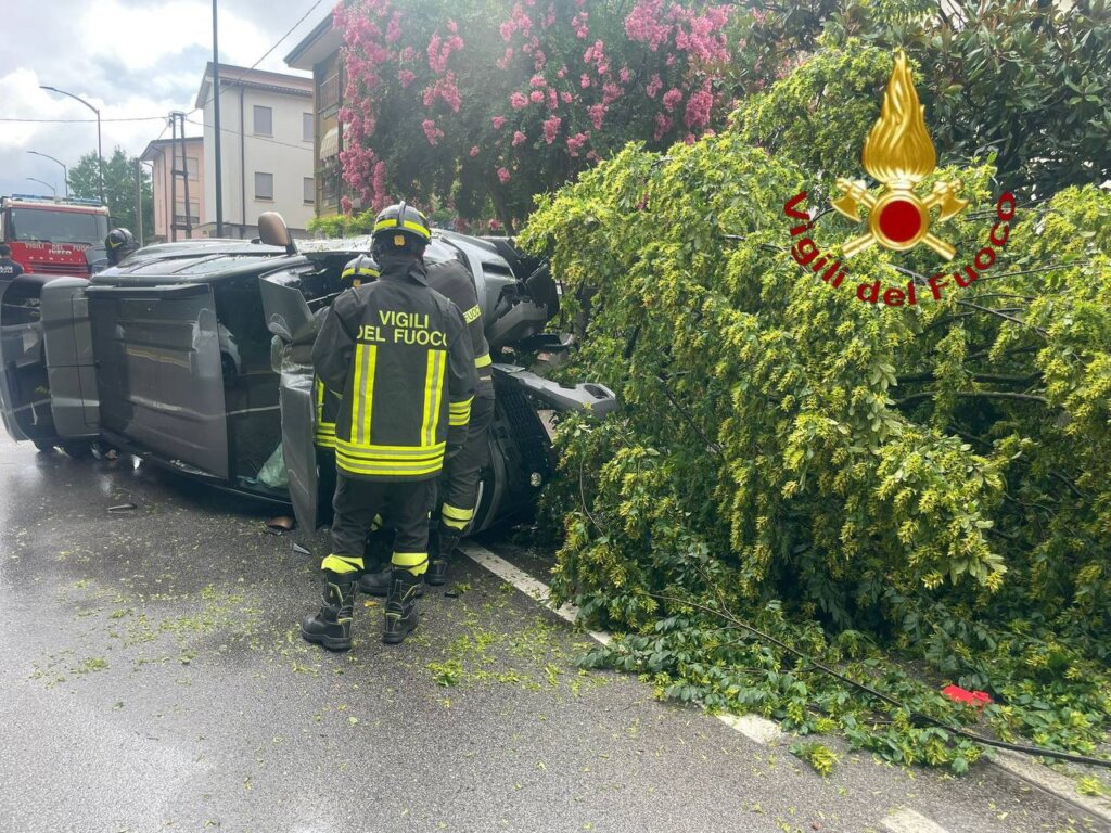 Il primo allarme è scattato alle 8:45 di sabato mattina in via Sant’Angelo, a Treviso, dove un’autovettura si è ribaltata dopo essere finita contro un albero, abbattendolo. La squadra dei Vigili del Fuoco, proveniente dalla sede centrale di Treviso, ha estratto il conducente, rimasto incastrato all’interno del veicolo, e lo ha affidato al personale del SUEM118. L’uomo è stato trasportato in ospedale. Sul posto è intervenuta anche la Polizia Locale per i rilievi del caso.