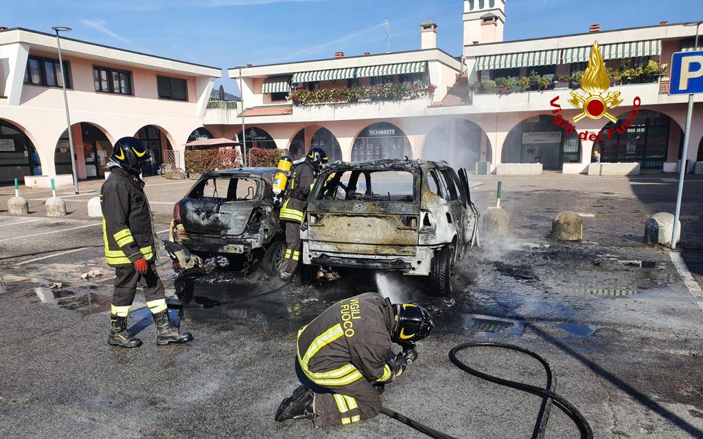 Poco prima delle 12:30, i vigili del fuoco sono intervenuti in piazza Aldo Moro a Battaglia Terme per l’incendio di due auto: nessuna persona è rimasta ferita. Le fiamme divampate da un’auto si sono subito estese al mezzo vicino. I pompieri arrivati da Abano terme con due mezzi e 5 operatori, hanno spento il rogo delle due auto andate completamente distrutte. Le cause di probabile natura elettromeccanica sono al vaglio dei tecnici dei vigili del fuoco. Le operazioni di soccorso sono terminate dopo un’ora e mezza circa.