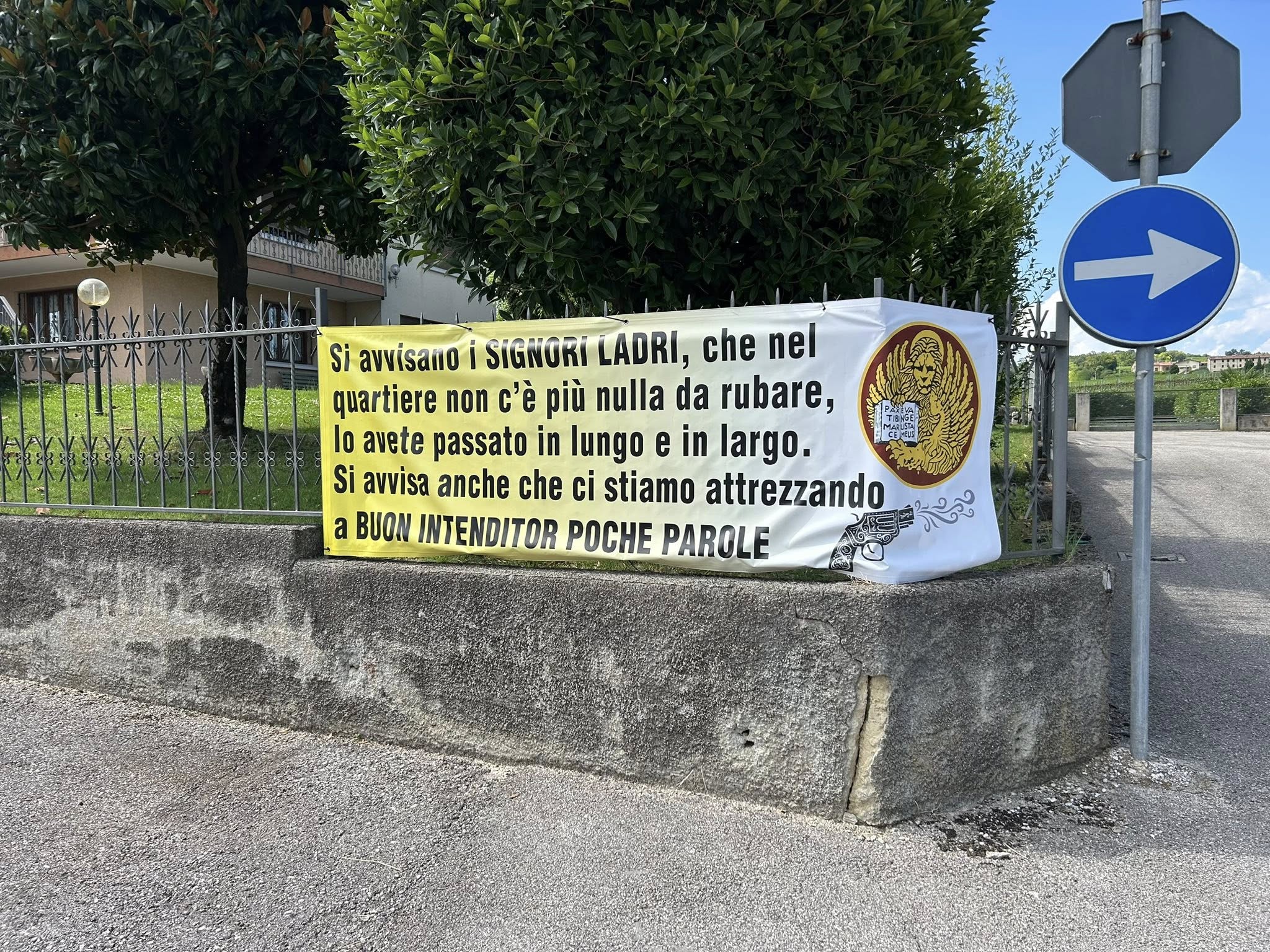 Veneto – Esasperati dai ladri: spunta striscione di avvertimento con pistola
