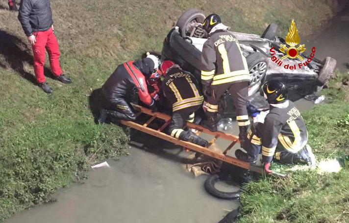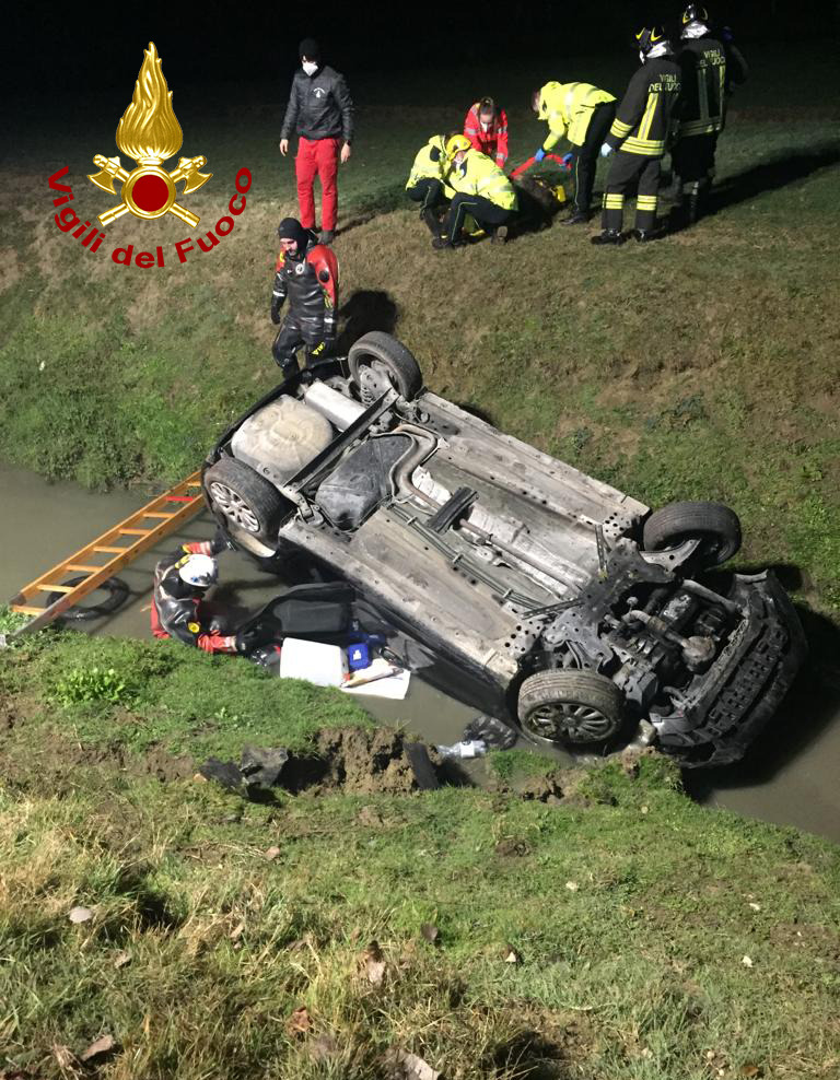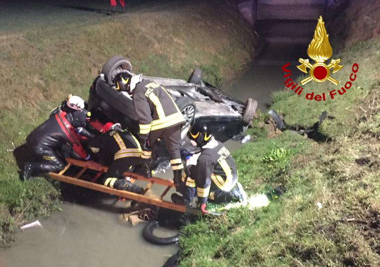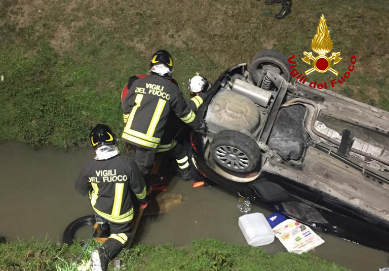 VENETO – Finisce con auto nel canale e rimane incastrato sott’acqua: salvato dai pompieri