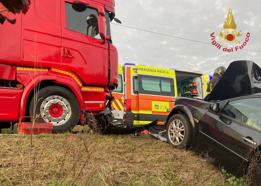 Veneto – Frontale tra auto e camion: ferito un 64enne