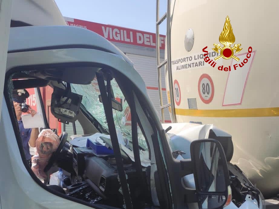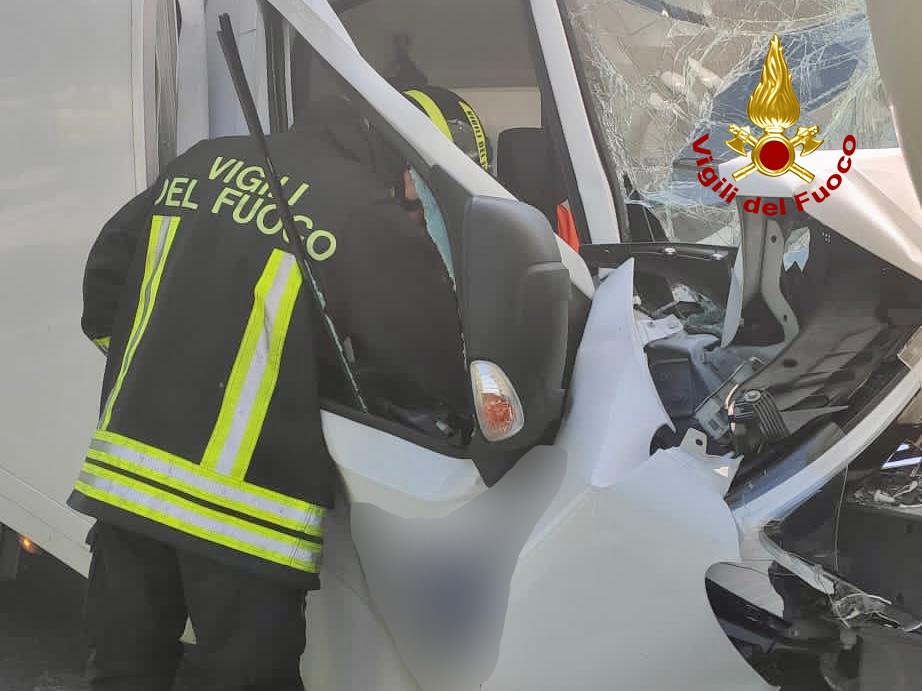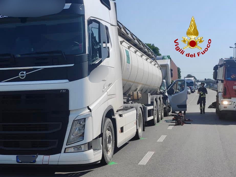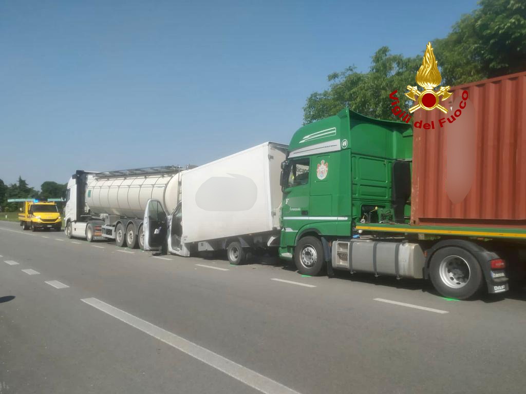 VENETO – Furgone schiacciato da due camion: automobilista rimane incastrato