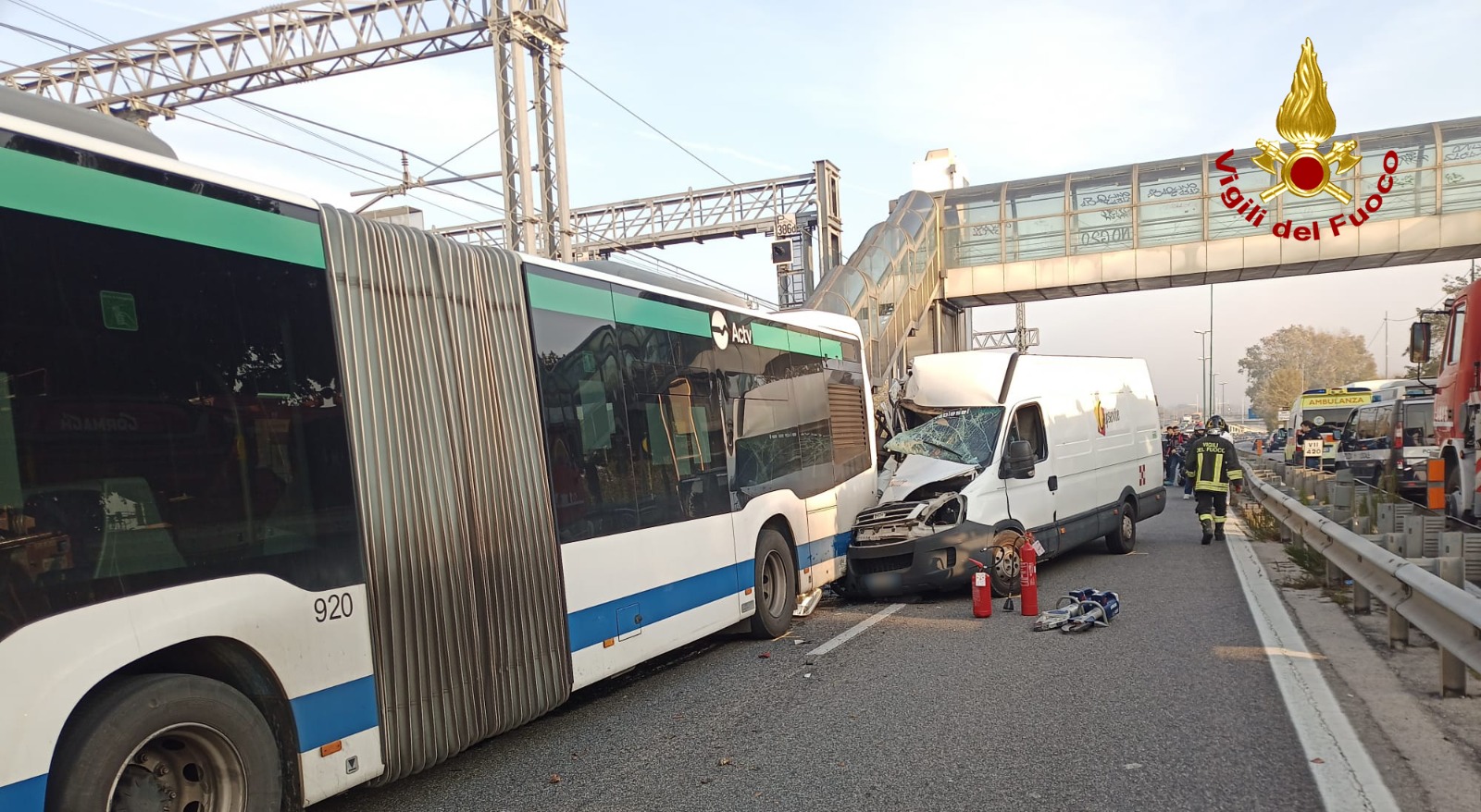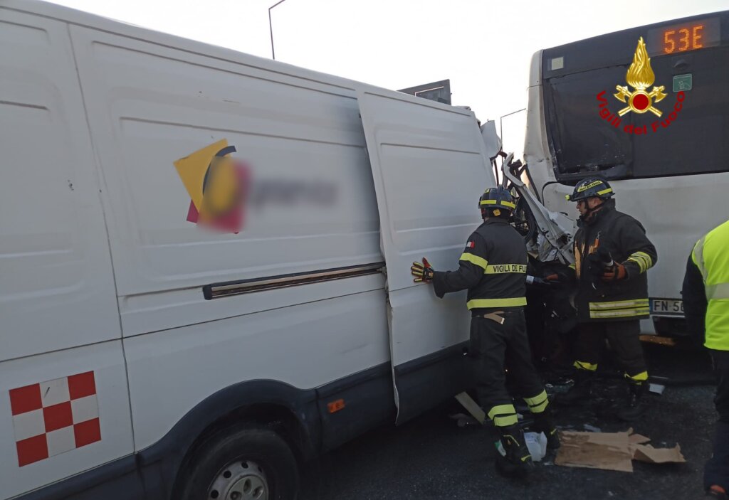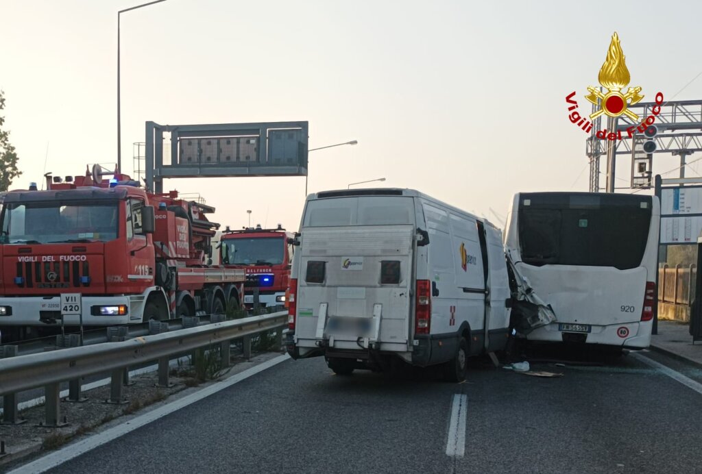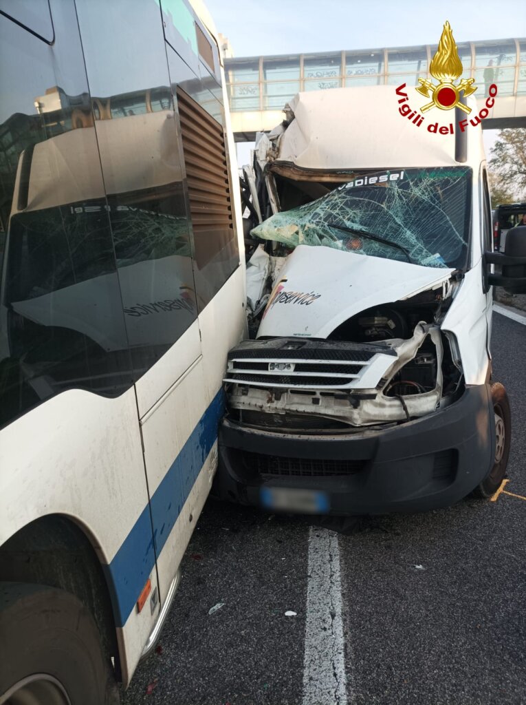 VENETO – Furgone si infila sotto un autobus: un ferito e alcuni contusi