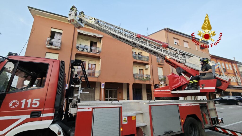Le squadre dei vigili del fuoco accorse dal locale distaccamento e da Rovigo con l’autoscala, hanno provveduto a fare rimuovere le auto per procedere a distaccare del tutto la grondaia e le altre tegole pericolanti. Rimosse per questioni di sicurezza anche le antenne.