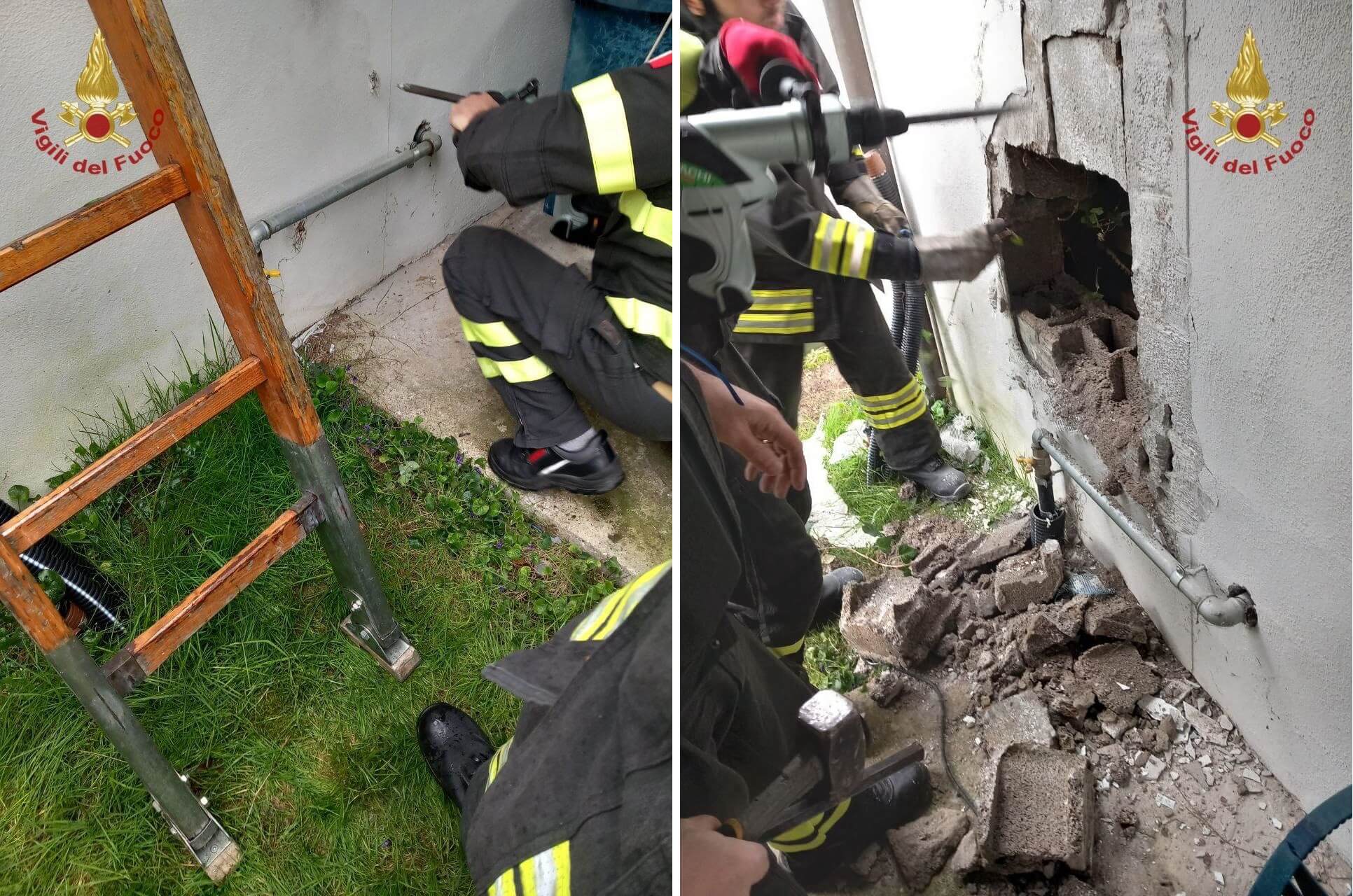 VENETO – I pompieri salvano un labrador rimasto incastrato fra due muri