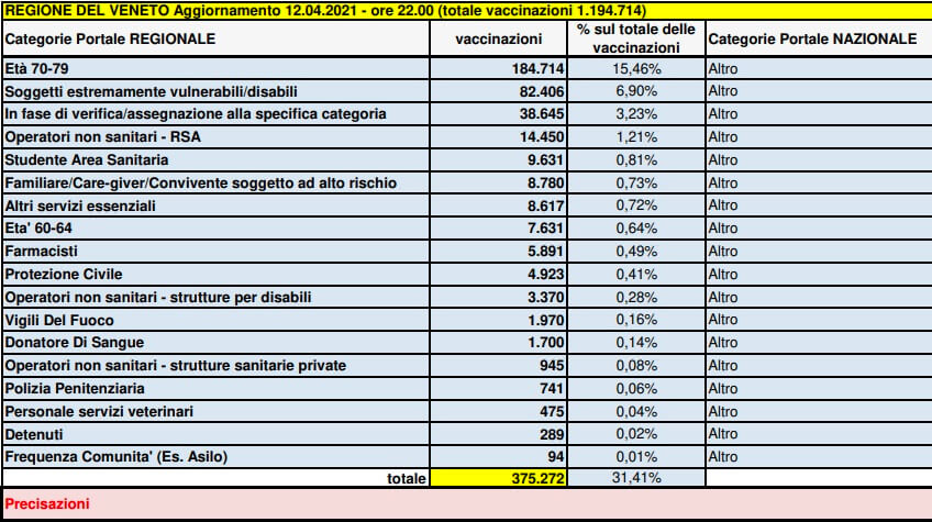 VENETO – I vaccinati sotto la categoria ‘ALTRO’