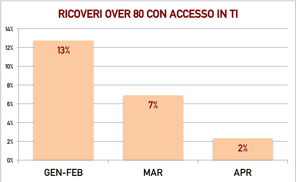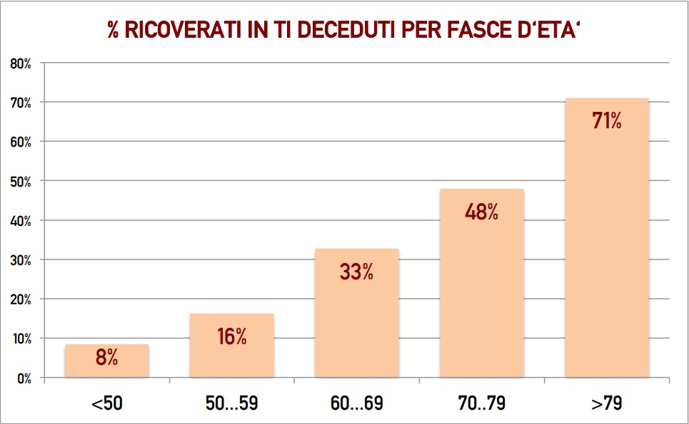 Qui sotto la percentuale dei deceduti in terapia intensiva per fasce d’età