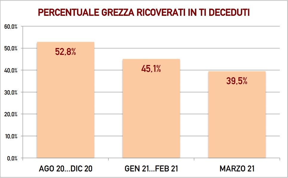 Cala anche la percentuale dei ricoverati in terapia intensiva deceduti