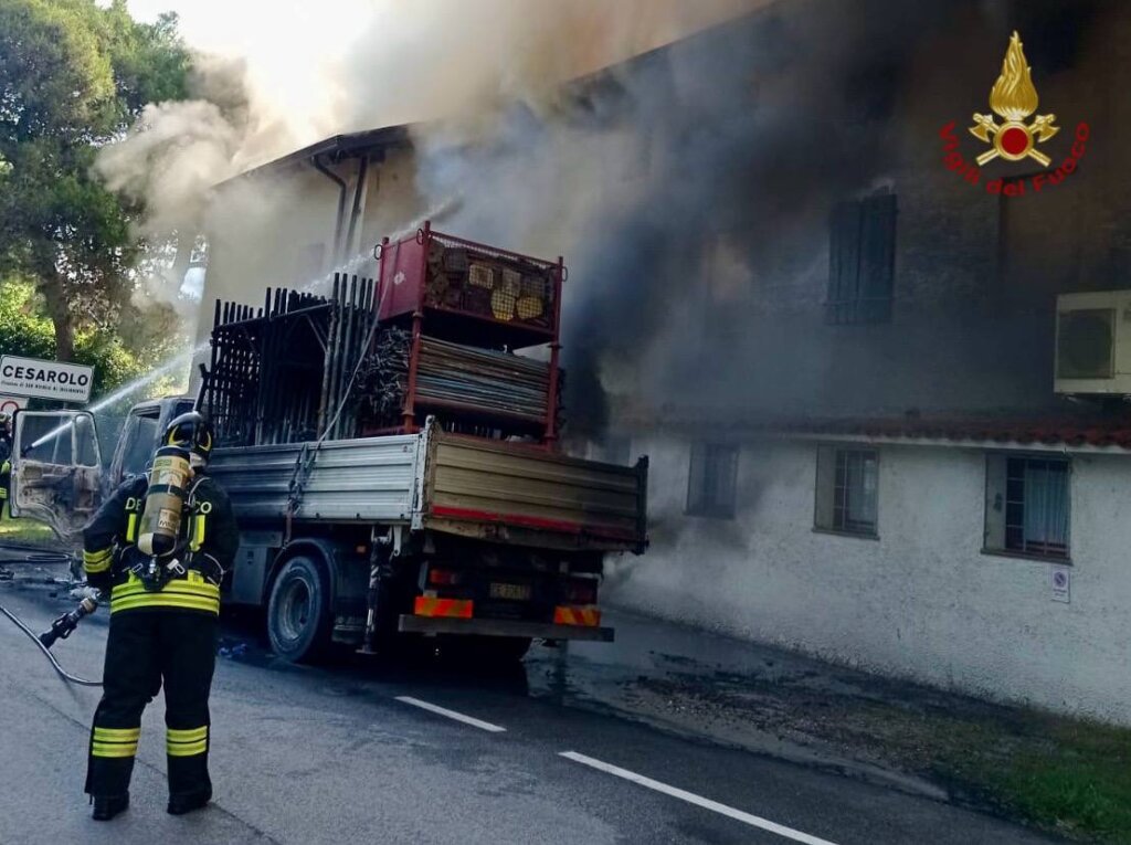 Veneto – Incendio di un camion si propaga a un ristorante: Vigili del fuoco al lavoro