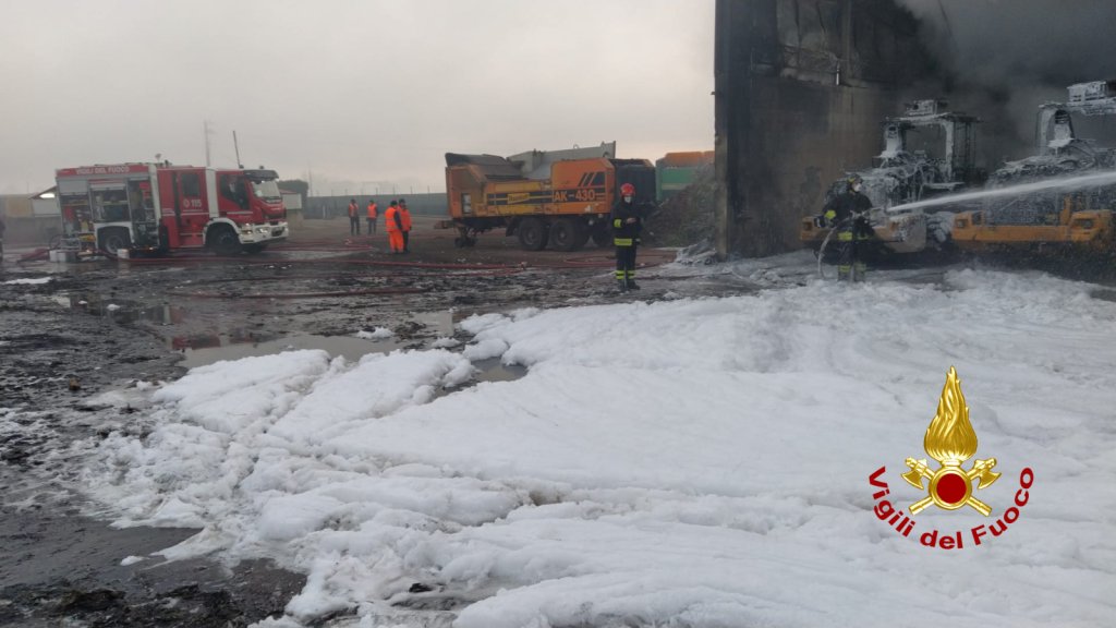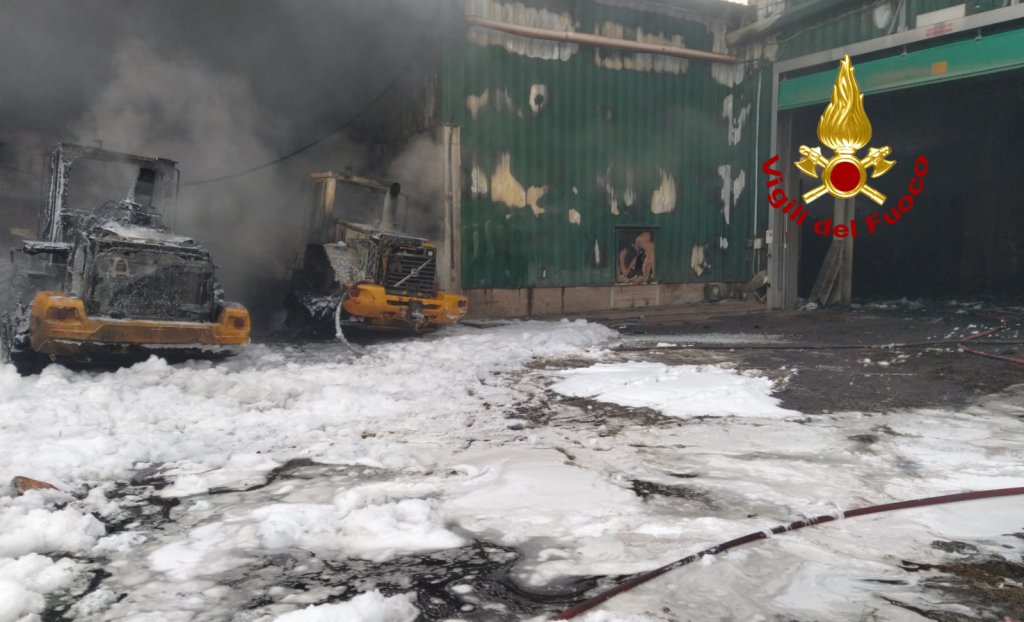 Azienda di rifiuti in fiamme, pompieri al lavoro dall’alba (FOTO&VIDEO)