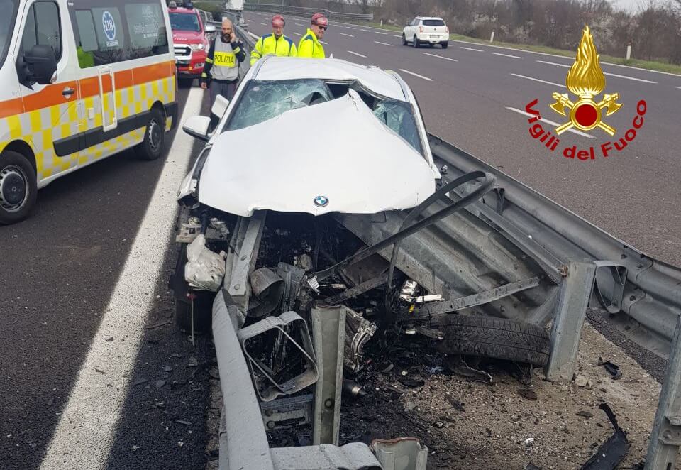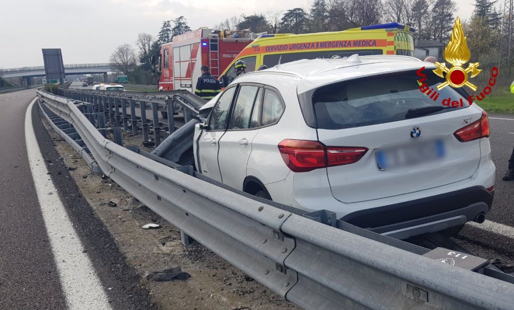 VENETO – Incidenti fotocopia in autostrada: auto infilzano il guardrail, autisti miracolati