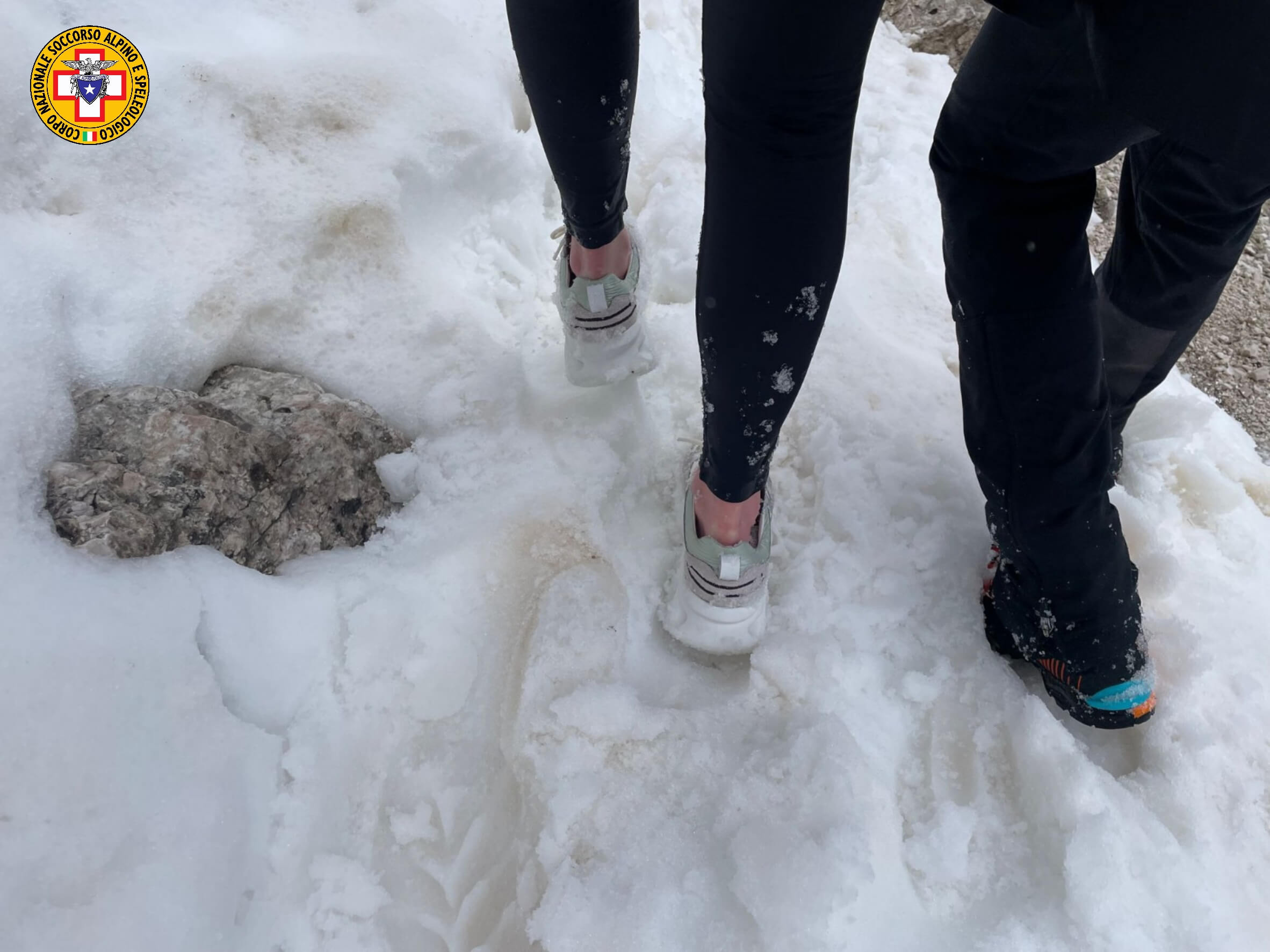 VENETO - Incredibile! Escursionisti senza abbigliamento adeguato (scarpe da ginnastica e fantasmini) vanno in montagna in alta quota: molti interventi del Soccorso Alpino | TViWeb VENETO - Incredibile! Escursionisti senza abbigliamento adeguato (scarpe da ginnastica e fantasmini) vanno in montagna in alta quota: molti interventi del Soccorso Alpino | TViWeb