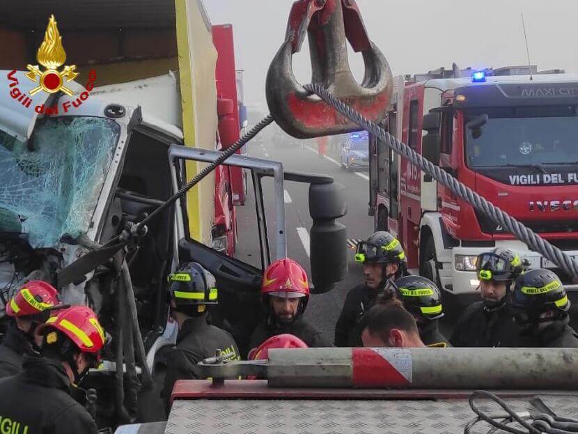 VENETO – Inferno in autostrada: maxi tamponamento fra 8 mezzi, 6 feriti
