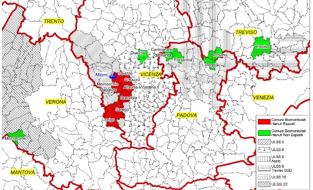 Sono stati selezionati i seguenti comuni: per l’area a maggiore impatto, Montecchio Maggiore, Lonigo, Brendola, Creazzo, Altavilla, Sovizzo, Sarego; per l’area di controllo: Mozzecane, Dueville, Carmignano, Fontaniva, Loreggia, Resana, Treviso.