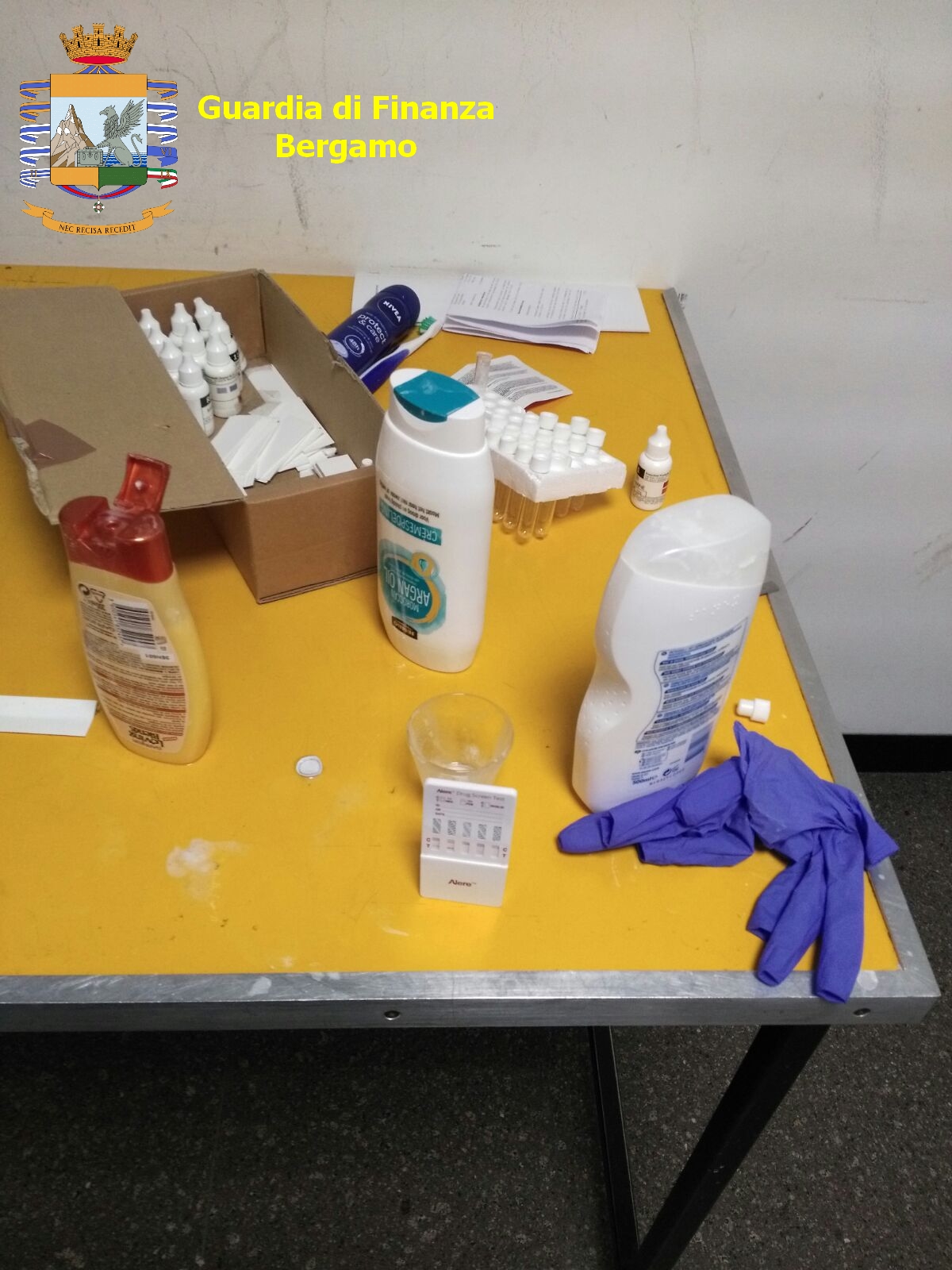 I Finanzieri in servizio presso lo scalo aeroportuale bergamasco, durante i controlli per il contrasto al narcotraffico, insospettiti per le numerose confezioni di shampoo trasportate nel bagaglio da una ventenne italiana proveniente da Eindhoven, hanno sottoposto ad analisi il liquido contenuto nei flaconi al seguito della passeggera. I risultati degli esami
