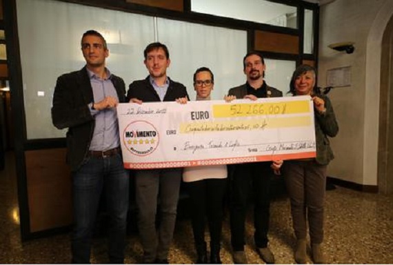 Il gruppo consiliare in Regione Veneto del Movimento 5 Stelle ha celebrato oggi il ‘Restitution Day’. I consiglieri hanno restituito una parte dei loro stipendi, delle indennità di funzione e dei rimborsi non utilizzati con un maxi-assegno di 52.266 euro donati a Mira, Dolo e Pianiga, i tre Comuni della Riviera del Brenta colpiti dal tornado. “Abbiamo già tagliato i costi della politica in Regione Veneto – commenta il gruppo – con questo gesto abbiamo dimostrato che alle parole facciamo seguire fatti concreti”.