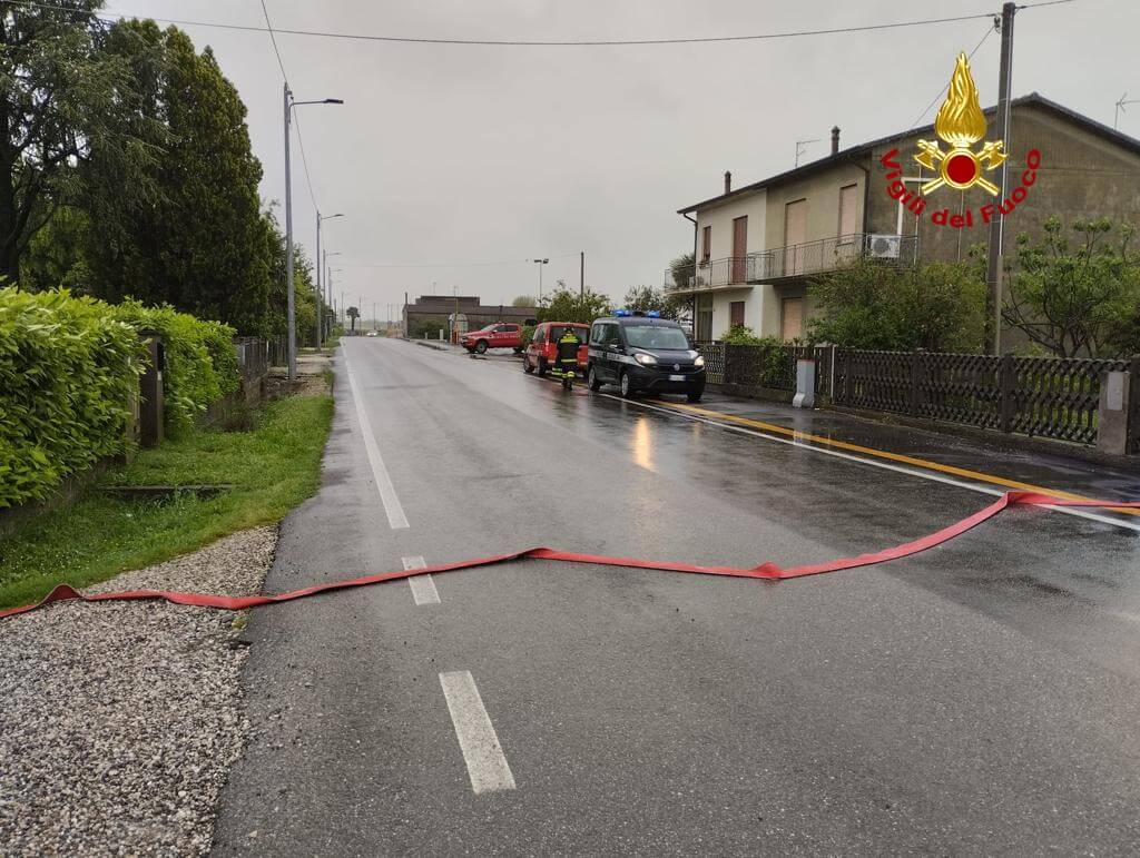 Prosegue il lavoro dei vigili del fuoco tra le province di Padova e Rovigo per il maltempo che sta interessando il Veneto da ieri.