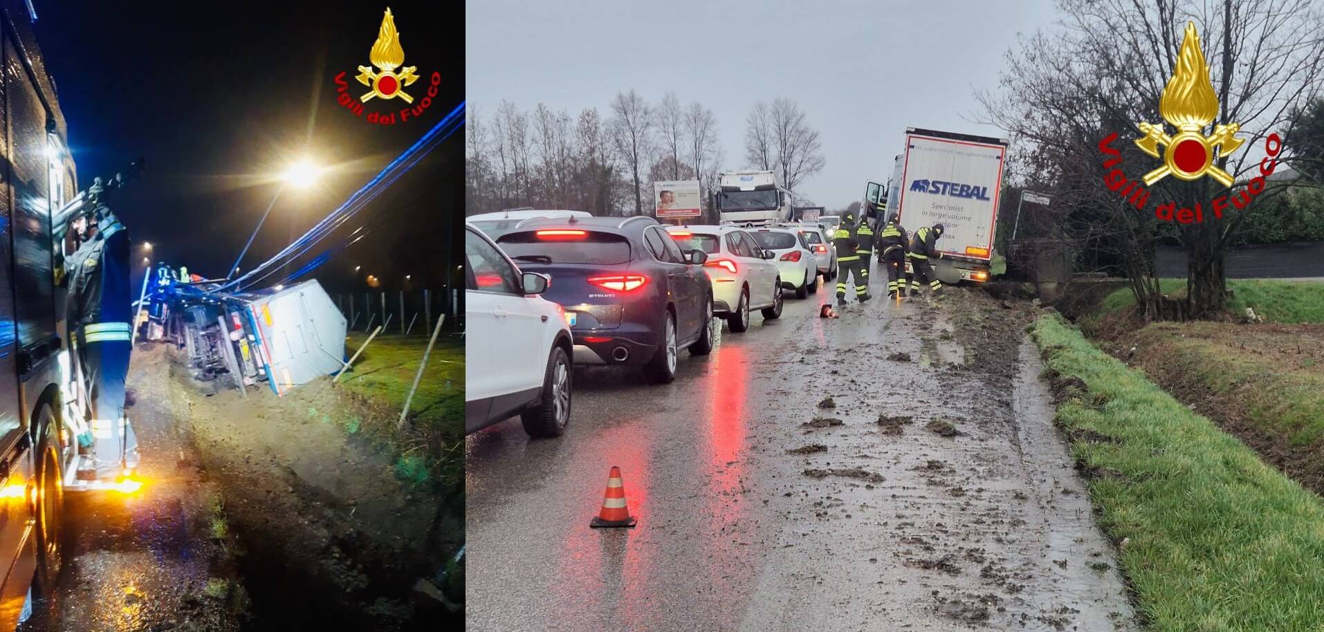 Veneto – Mattinata di incidenti con mezzi pesanti: un camion e uno fuori strada
