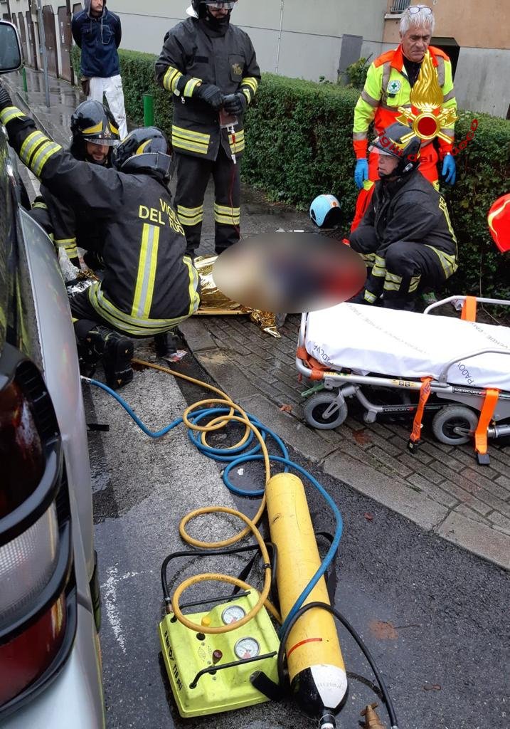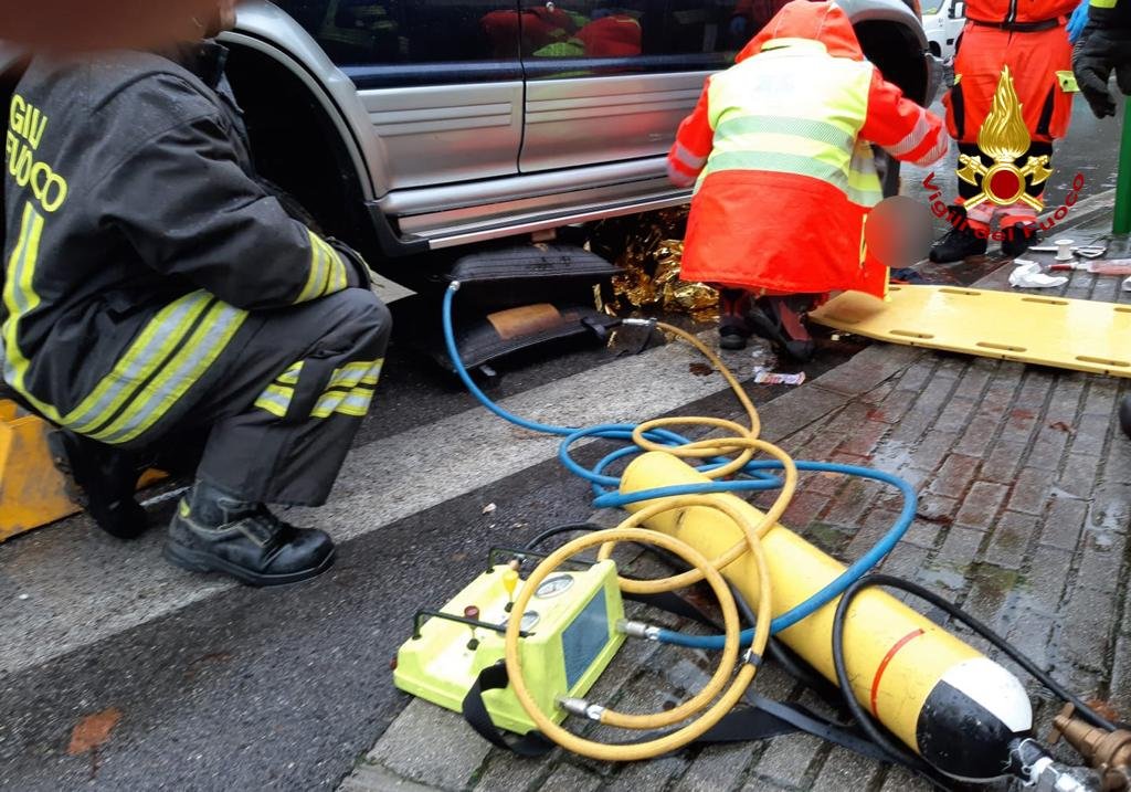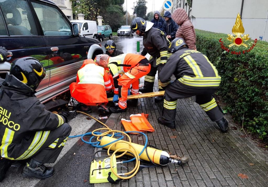 Poco prima delle 9, i vigili del fuoco sono intervenuti in via Sacro Cuore angolo via Franzella a Padova per soccorrere un centauro finito sotto un SUV a causa di un incidente stradale. I pompieri accorsi dalla centrale con la prima partenza, hanno sollevato con dei cuscini pneumatici ad aria l’auto, permettendo al personale del suem 118 il primo intervento sanitario all’uomo di circa 40 anni. Il ferito è stato stabilizzato e poi trasferito in ambulanza in ospedale. Illeso l’autista del SUV. La polizia locale ha deviato il traffico ed eseguito i rilievi del sinistro. Le operazioni di soccorso dei vigili del fuoco sono terminate dopo circa un’ora.