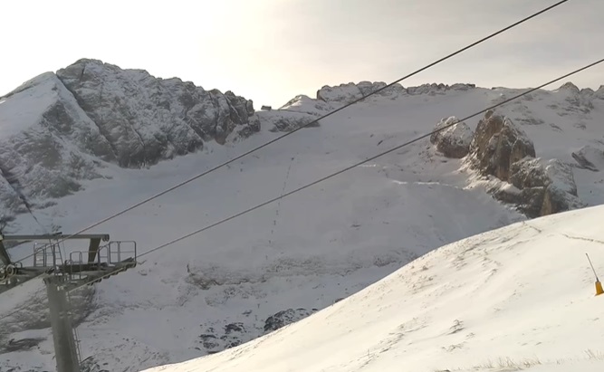 Un nuovo impulso perturbato ha portato altri 10 centimetri di neve fresca a Punta Penia, la vetta della montagna, 3.343 metri di quota, con temperatura che è scesa fino a -11 gradi.