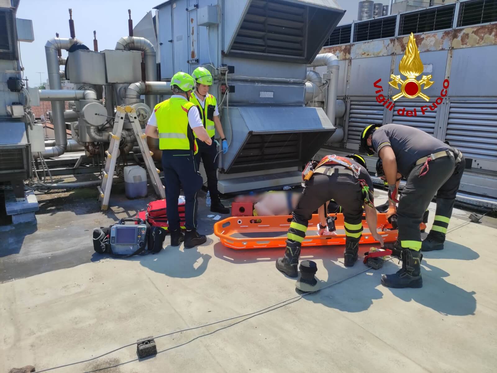 VENETO – Operaio soccorso dai pompieri sul tetto di un edificio (video)