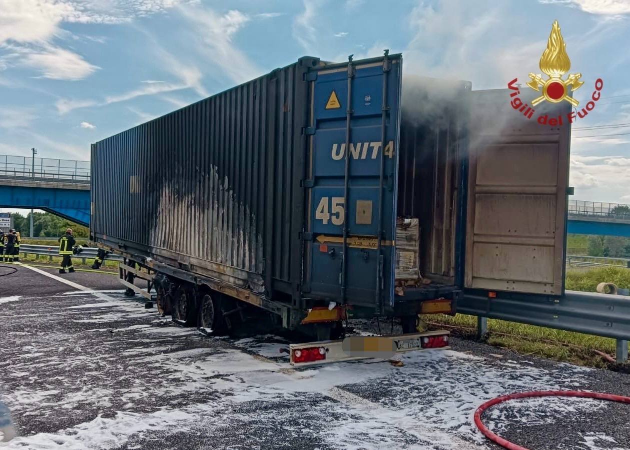 L’allarme è scattato attorno alle 14. Sul posto sono intervenute diverse squadre dei Vigili del fuoco da Mestre, Mira e Treviso, con due autopompe e due autobotti. Le fiamme avevano già avvolto completamente il rimorchio, ma sono state domate prima che potessero coinvolgere la motrice o altri veicoli.