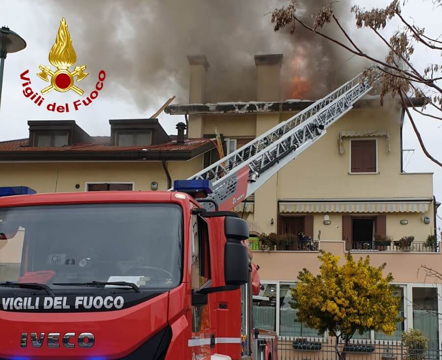 VENETO – Paura in un condominio: a fuoco sottotetto