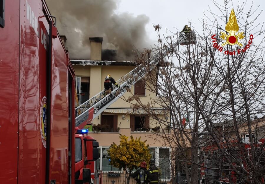 Da poco prima delle 9, i vigili del fuoco stanno operando per l’incendio del sottotetto di un’abitazione di 6 appartamenti in Via Via Aurelio Nicolodi in località Marghera a Venezia: nessuna persona risulta ferita. I pompieri arrivati da Mestre con due autopompe, un’autobotte, due autoscale di cui una in rinforzo da Padova, il carro aria e 18 operatori coordinati dal capo servizio, hanno iniziato le operazioni di spegnimento del sottotetto in legno, evitando un rogo generalizzato di tutta la struttura. Le fiamme sono state ora circoscritte e sono in corso le operazioni di spegnimento di tutti i focolai. Cause in corso di accertamento.