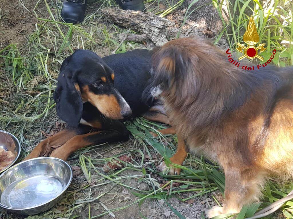 “Teo” un piccolo meticcio, oggi pomeriggio era a passeggio ad Arzarello di Piove di Sacco, tutto a un tratto si è messo a correre inoltrandosi nell’erba alta in mezzo a un campo a oltre duecento metri dalla strada, ricorso dalla padrona, la quale, l’ha ritrovato vicino a un cucciolo di segugio impigliato in un vecchio cavo telefonico. Non riuscendo a liberare l’animale, la donna ha chiamato i vigili del fuoco. I componenti della squadra, giunti sul posto dal locale distaccamento, hanno con molta cura e delicatezza tranciato il cavo in cui era avvolto l’animale, oramai allo stremo delle forze, denutrito e disidratato. I pompieri hanno subito prestato le prime cure, dando da bere all’animale oltre a coccolarlo. Si suppone che il cane sia rimasto bloccato sul posto per diversi giorni. Durante tutte le operazioni di soccorso “Teo” non si è mai allontanato dal nuovo amico, che ha praticamente salvato, scorgendolo in mezzo alla vegetazione. Il segugio sprovvisto di microchip è stato preso in custodia dal cinovigile per essere portato in clinica veterinaria per le cure.