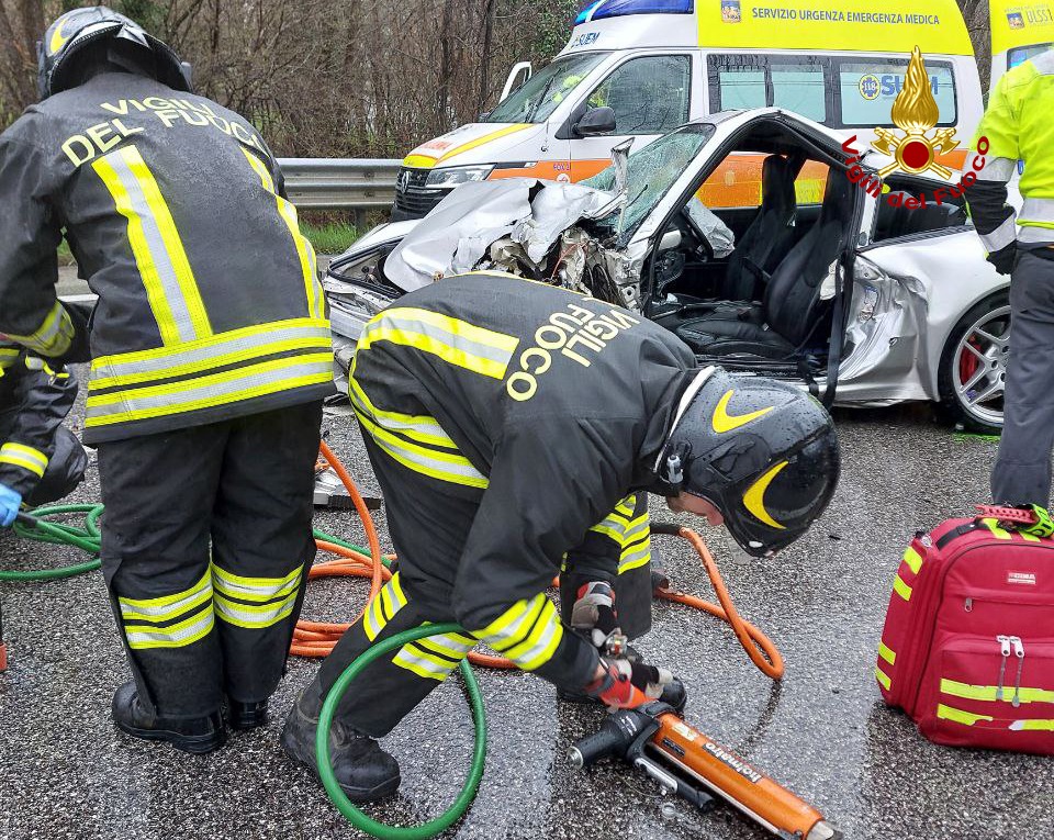 Poco prima delle 13:30 di mercoledì 27 marzo, i vigili del fuoco sono intervenuti sulla SS 50 bis variante al km 6+a00 nel comune di Arsiè per un incidente stradale tra una potente auto sportiva e un furgone: tre feriti. I pompieri accorsi da Feltre con due automezzi, hanno messo in sicurezza i mezzi ed estratto da una Porsche Carrera 4S l’autista, rimasto incastrato nell’abitacolo. Il ferito è stato preso in cura dal personale sanitario del Suem e trasferito in ospedale. Feriti anche l’autista e il passeggero del furgone, assistiti dai sanitari e trasferiti in pronto soccorso. I carabinieri hanno deviato il traffico ed eseguito i rilievi dell’incidente. Il personale dell’Anas ha ripristinato la sicurezza della strada, rimasta chiusa per circa un’ora. Le operazioni di soccorso dei vigili del fuoco sono terminate dopo circa due ore con la rimozione dei mezzi.