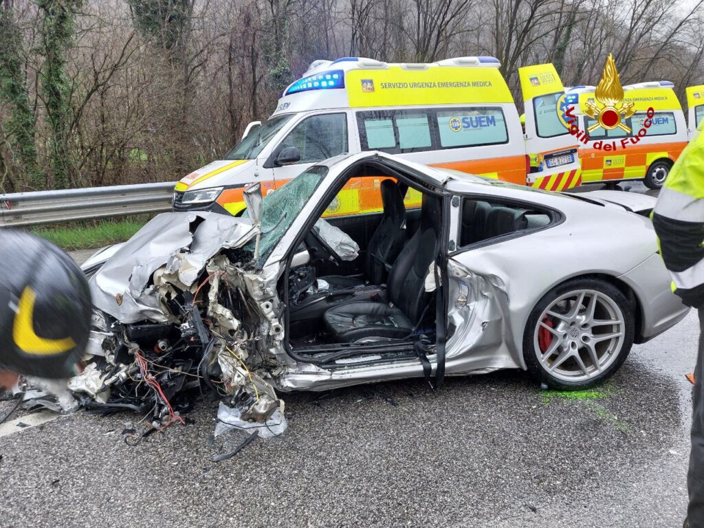 VENETO – Porsche Carrera si schianta contro furgone: tre feriti
