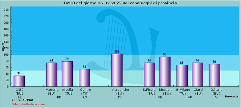 Ieri i livelli di polveri sottili in Veneto erano molto alti, nonostante l’arrivo in serata di forte vento, come previsto già da un bollettino della Protezione Civile.