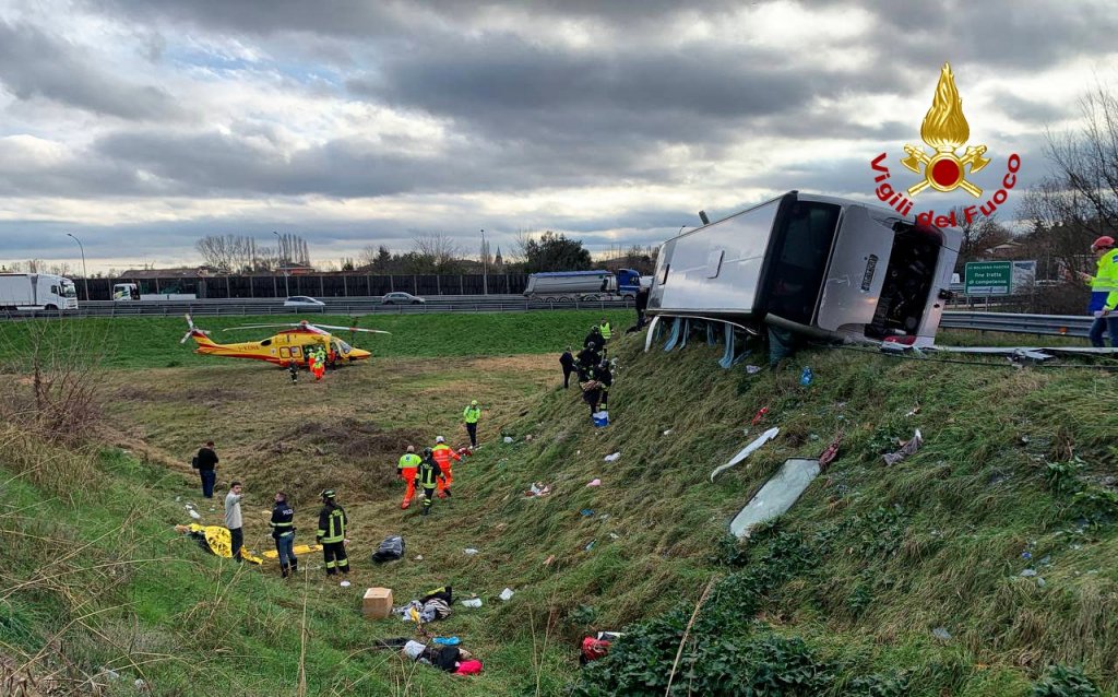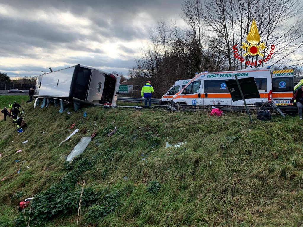 I vigili del fuoco accorsi da Padova, Mira e Venezia, hanno messo in sicurezza il bus con passeggeri di nazionalità rumena e coadiuvato l’uscita delle persone rimaste all’interno del mezzo.