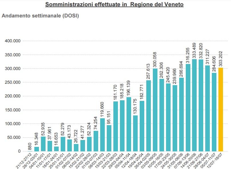 VENETO - Quasi 5 milioni di dosi somministrate: fascia 50-59, quasi uno su tre è scoperto | TViWeb VENETO - Quasi 5 milioni di dosi somministrate: fascia 50-59, quasi uno su tre è scoperto | TViWeb