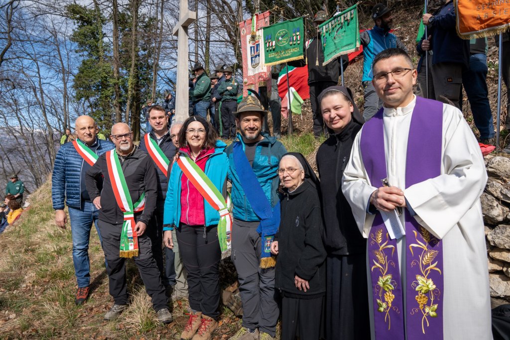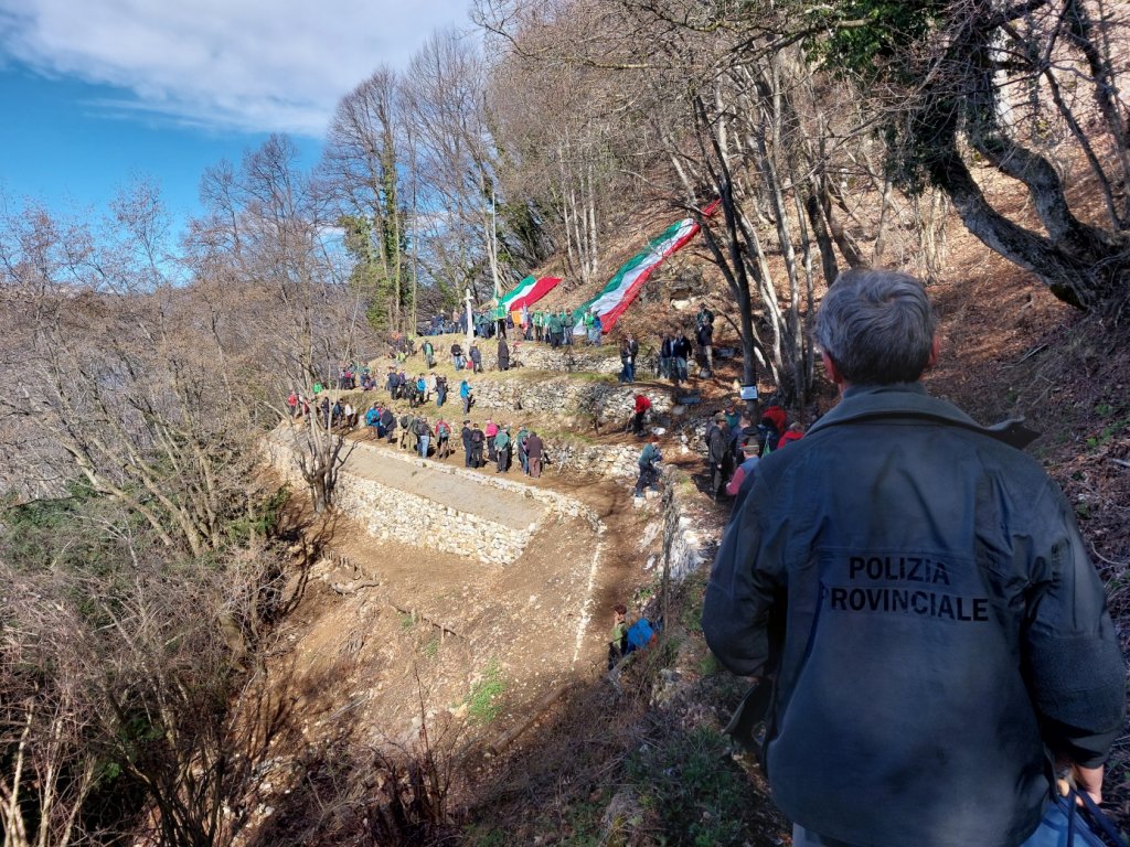 Tante le persone presenti, ognuna di loro protagonista di questa bella storia di recupero della memoria. La Provincia di Vicenza, come detto, ha finanziato i lavori con la collaborazione del Comune di Arsiero. Veneto Agricoltura li ha realizzati. Un esercito di quasi 90 volontari ha messo a disposizione 900 ore per lavori di recupero, fin dal 2017, e poi di mantenimento. Tra loro alpini di Vicenza e Verona, alpini paracadutisti del 4° Reggimento, iscritti Cai, appassionati di montagna. A coordinarli lo storico Manuel Grotto, che ha anche condotto le varie fasi della cerimonia intervallate dal coro Ana El Biron di San Giovanni Ilarione.