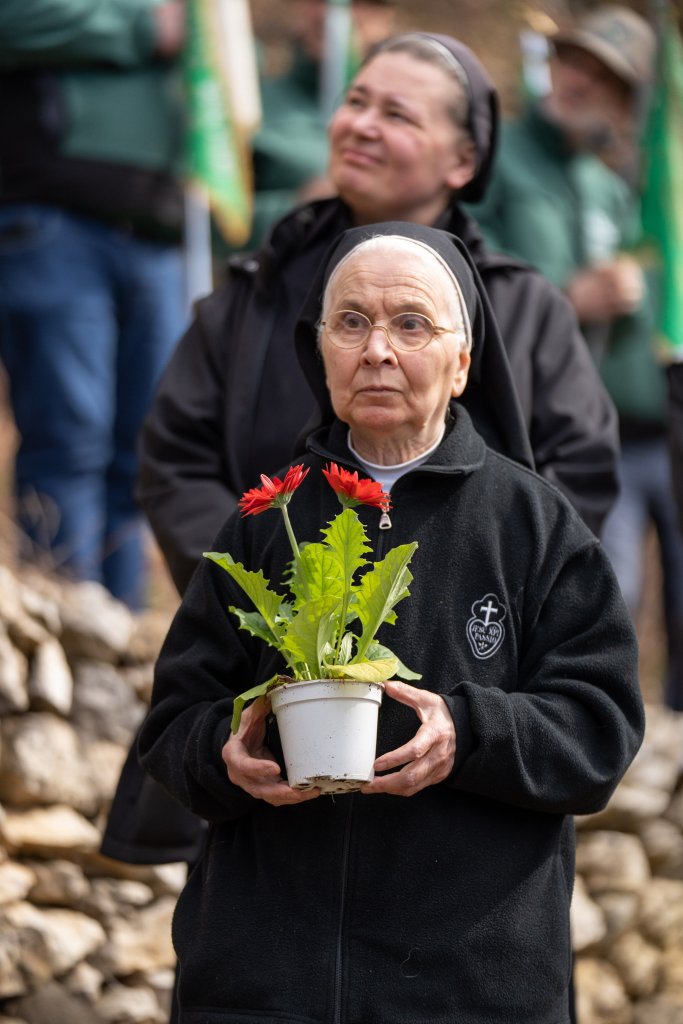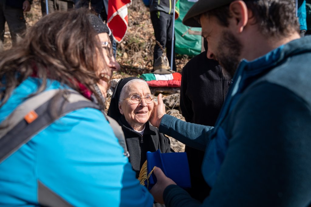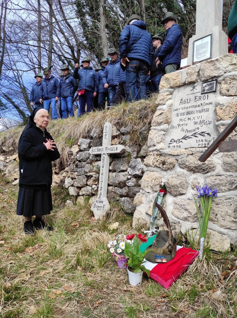 Durante la cerimonia è stato ricordato mons. Francesco Galloni, cappellano militare pluridecorato, noto anche come “Angelo del Pasubio”, in prima linea con le sue penne nere durante la Grande Guerra, si deve a lui il recupero di tanti caduti, su vari fronti. In suo ricordo suor Teresa ha deposto il cappello con la penna nera, conservato a Villa La Montanina – Comunità Santissima Annunziata.