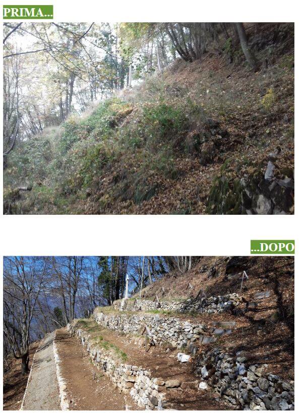 Per completare l’intervento riportando il cimitero nella sua forma originaria e permetterne la conservazione era necessario un lavoro di consolidamento e ricostruzione delle parti crollate del muro a secco a valle del cimitero e una manutenzione di quelle superiori.