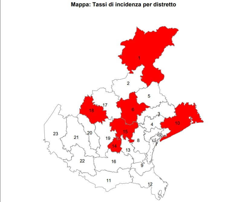 VENETO – Restano 6 i distretti rossi, ma altri rischiano (Ulss 8 lontana dai limiti per ora)