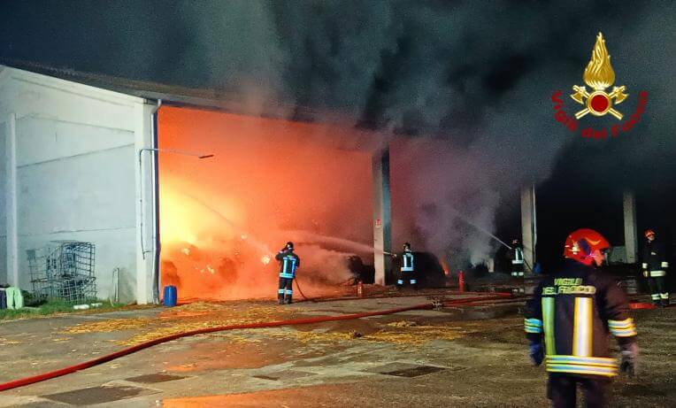 VENETO – Rogo in un’azienda agricola nella notte: bruciati 1500 quintali di paglia