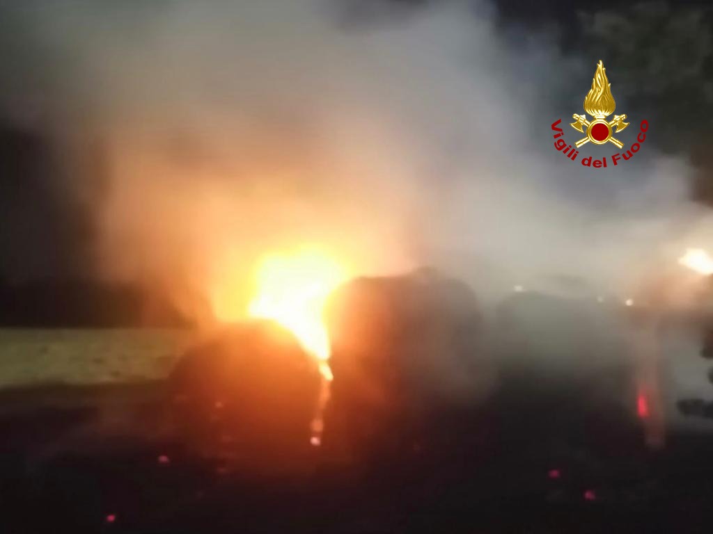 VENETO – Rogo nella notte: a fuoco rotoballe