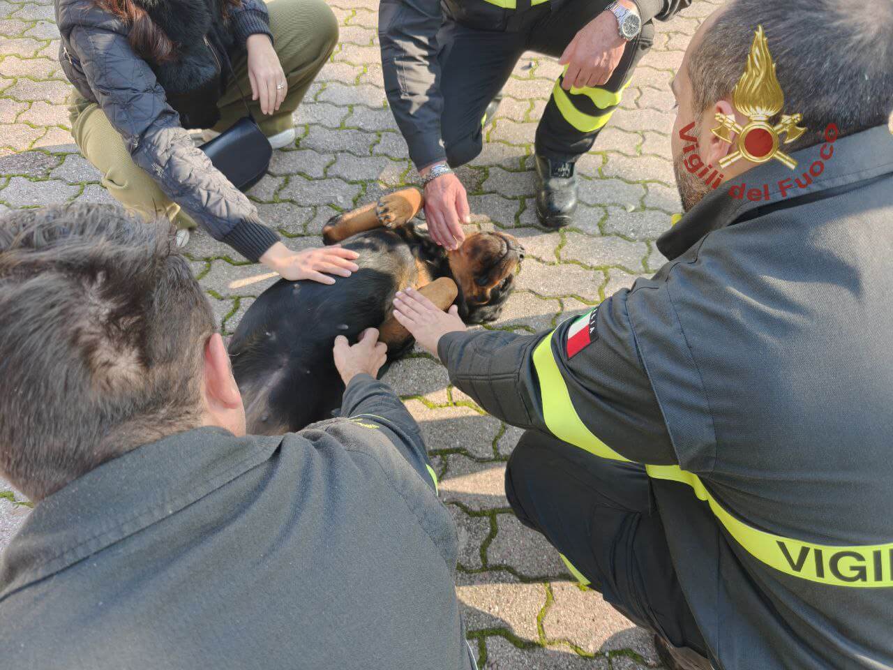 Veneto – Rottweiler incastrato nella recinzione, salvato dai Vigili del fuoco