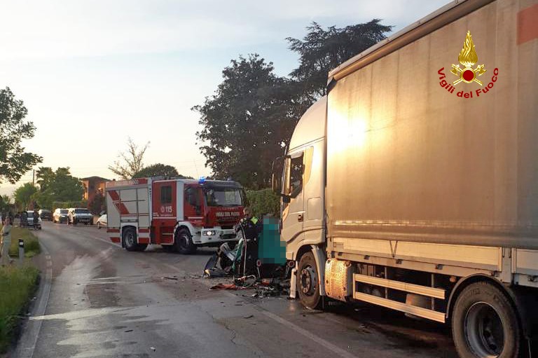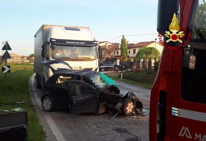 I vigili del fuoco arrivati da Cittadella hanno messo in sicurezza i mezzi. Purtroppo nonostante i soccorsi il medico del SUEM, ha solo potuto constatare la morte della giovane donna alla guida di una Fiat Punto. Illeso l’autista del mezzo pesante. Ancora in corso le operazioni di soccorso e i rilievi della polizia locale.