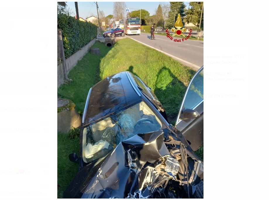La squadra dei vigili del fuoco arrivata da San Donà ha messo in sicurezza i mezzi, ed estratto dall’auto il conducente, che è stato preso in cura dal personale del Suem per essere poi trasferito in ospedale.