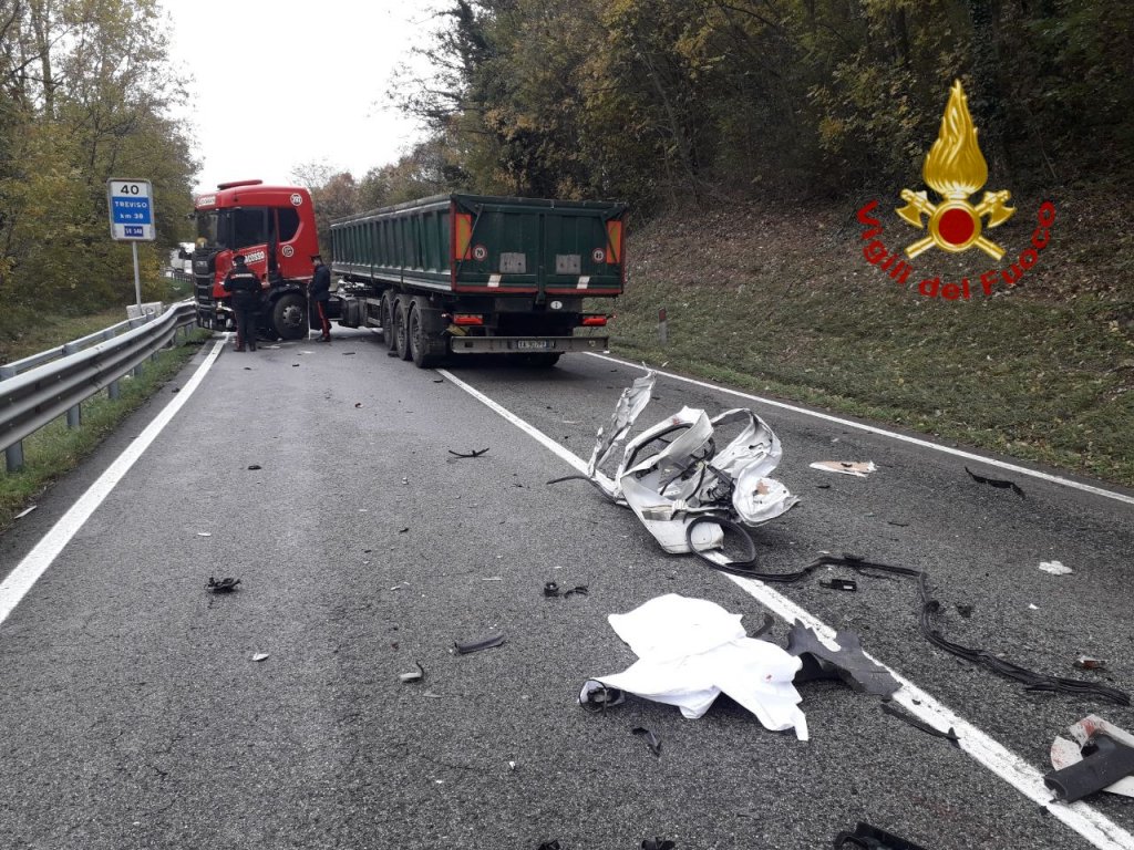Alle 11:45, di mercoledì, i vigili del fuoco sono intervenuti sulla SR 348, a Quero Vas per un incidente tra un autoarticolato e furgone: deceduto l’autista del mezzo più leggero. I pompieri arrivati da Feltre e Treviso con l’autogrù, hanno messo in sicurezza, i mezzi. Purtroppo, nonostante i soccorsi il medico del Suem, ha dovuto dichiarare la morte del giovane autista del furgone. Si tratta di Salvatore Stefani, 20enne residente a Mogliano Veneto ma che da qualche anno viveva a Feltre dove giocava nel Rugby Feltre. A bordo del camion un autista bosniaco, che ha riportato solo qualche contusione. La circolazione è al momento bloccata. I carabinieri hanno deviato il traffico ed eseguito i rilievi del sinistro. Sono ora in corso le operazioni di rimozione dei mezzi.