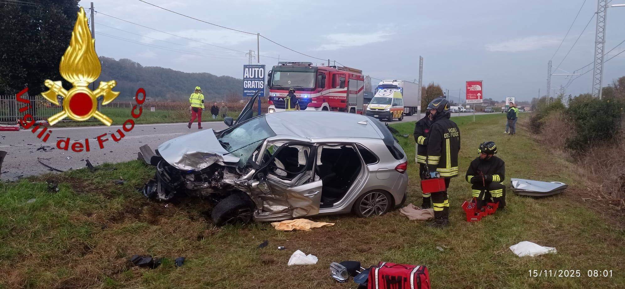 Alle 7.45 di questa mattina i Vigili del Fuoco sono intervenuti lungo la Strada Feltrina, nel territorio di Montebelluna, per un incidente frontale tra due autovetture.